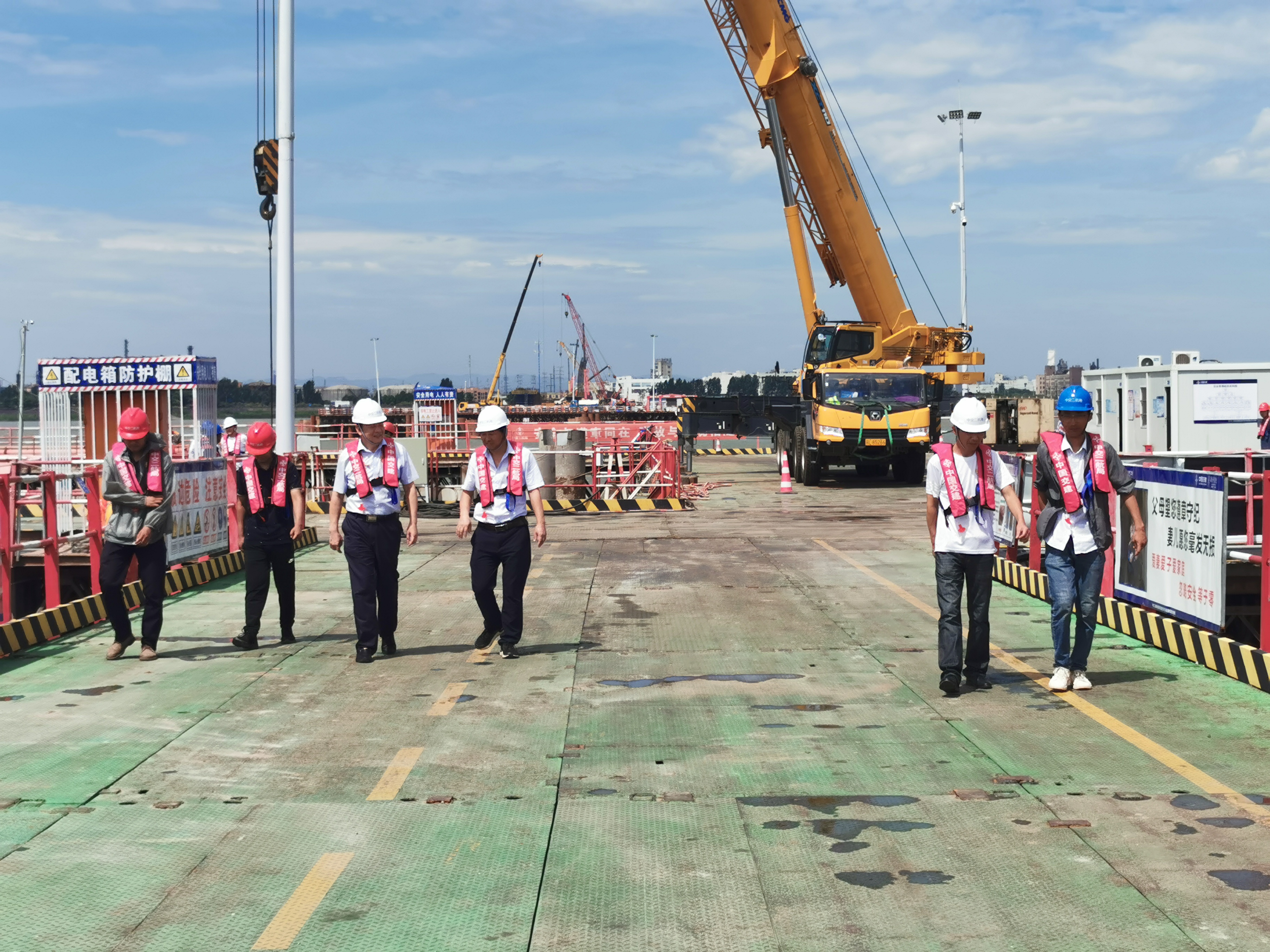 检查组一行深入施工现场,听取项目负责人对近期开展工作的情况汇报,详细了解目前现场安全管理措施以及防台防汛工作、应急演练活动等方面的开展情况,仔细查看了主墩平台及围堰施工等进展,对设备设施防护、危险作业许可等进行了检查,并针对性指出现场施工目前存在的安全隐患问题,提出整改建议。