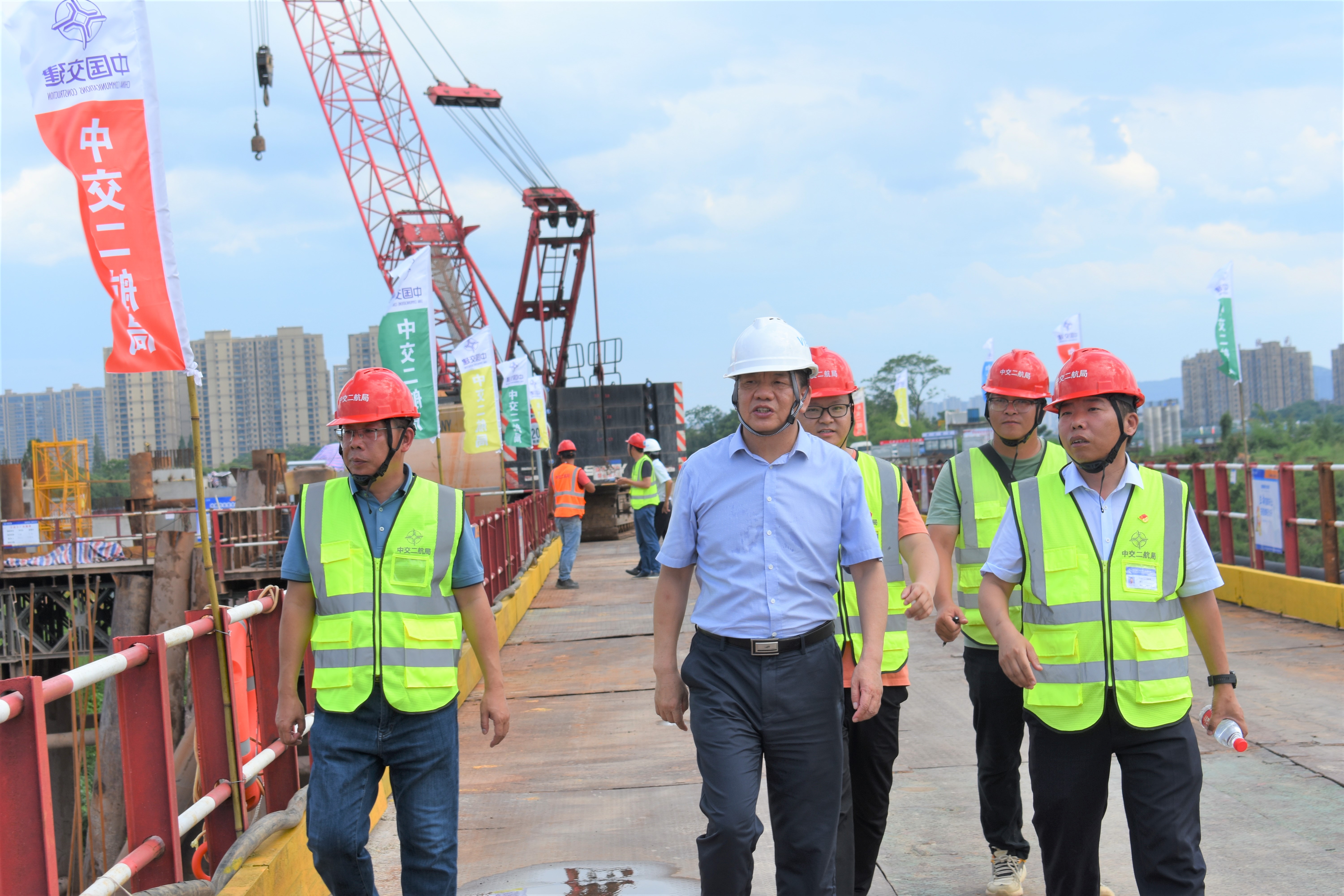 王德怀一行率先到艇湖西路二号桥、林溪路二号桥及排涝站施工现场对安全防护措施、设备管理、临时用电、“新三宝”应用等方面展开检查并提出指导性意见。随后,检查组对内页资料进行检查,并召开反馈会。