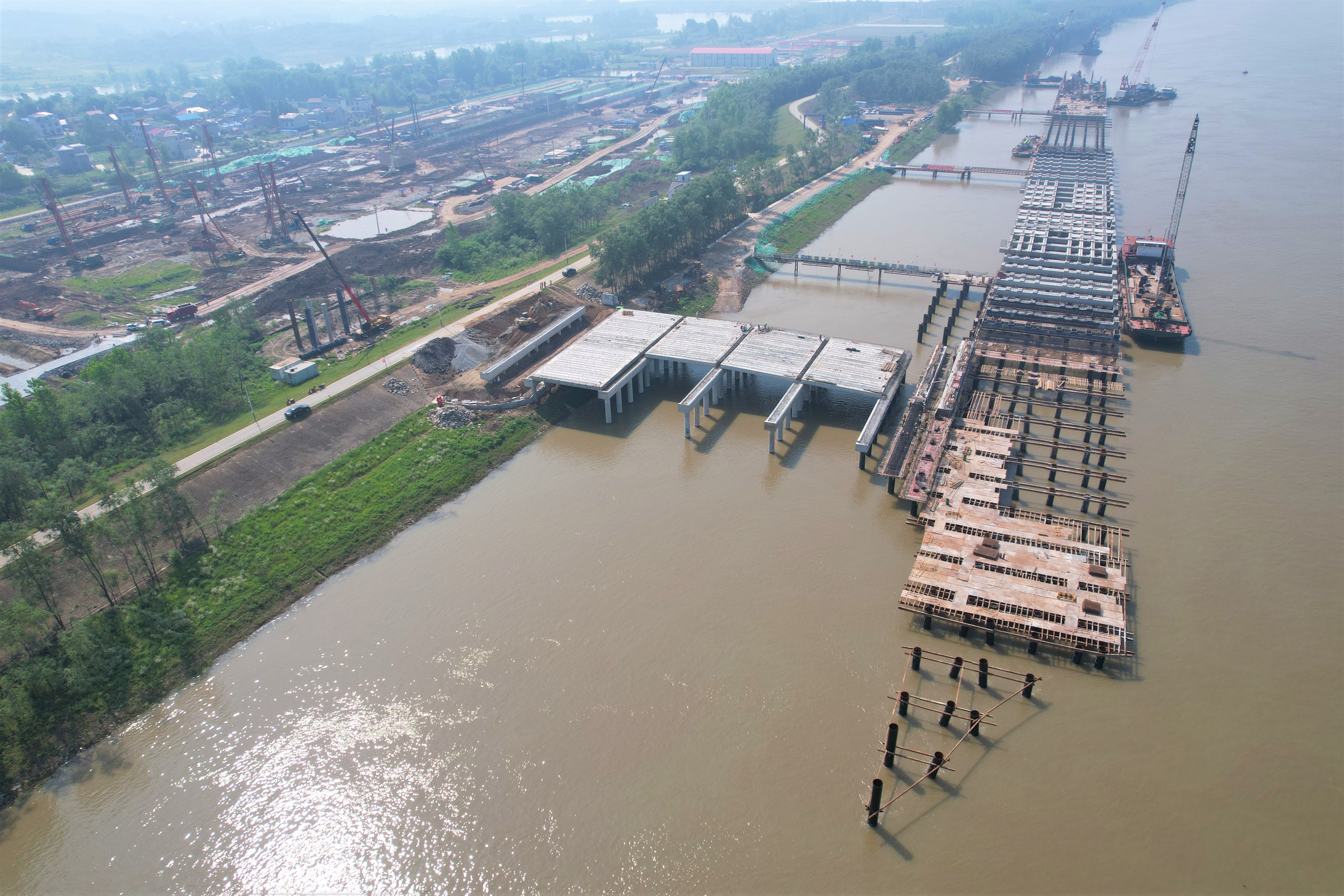 本工程位于湖北省黄冈市浠水港兰溪港区,规划建设7个5000吨级泊位,设计年吞吐量4000万吨。公司承建码头主体结构,码头平台长903米,采用高桩梁板式结构,平台中部设置2座长103米引桥,宽度分别为17米、22米,合同额共计1.03亿元。