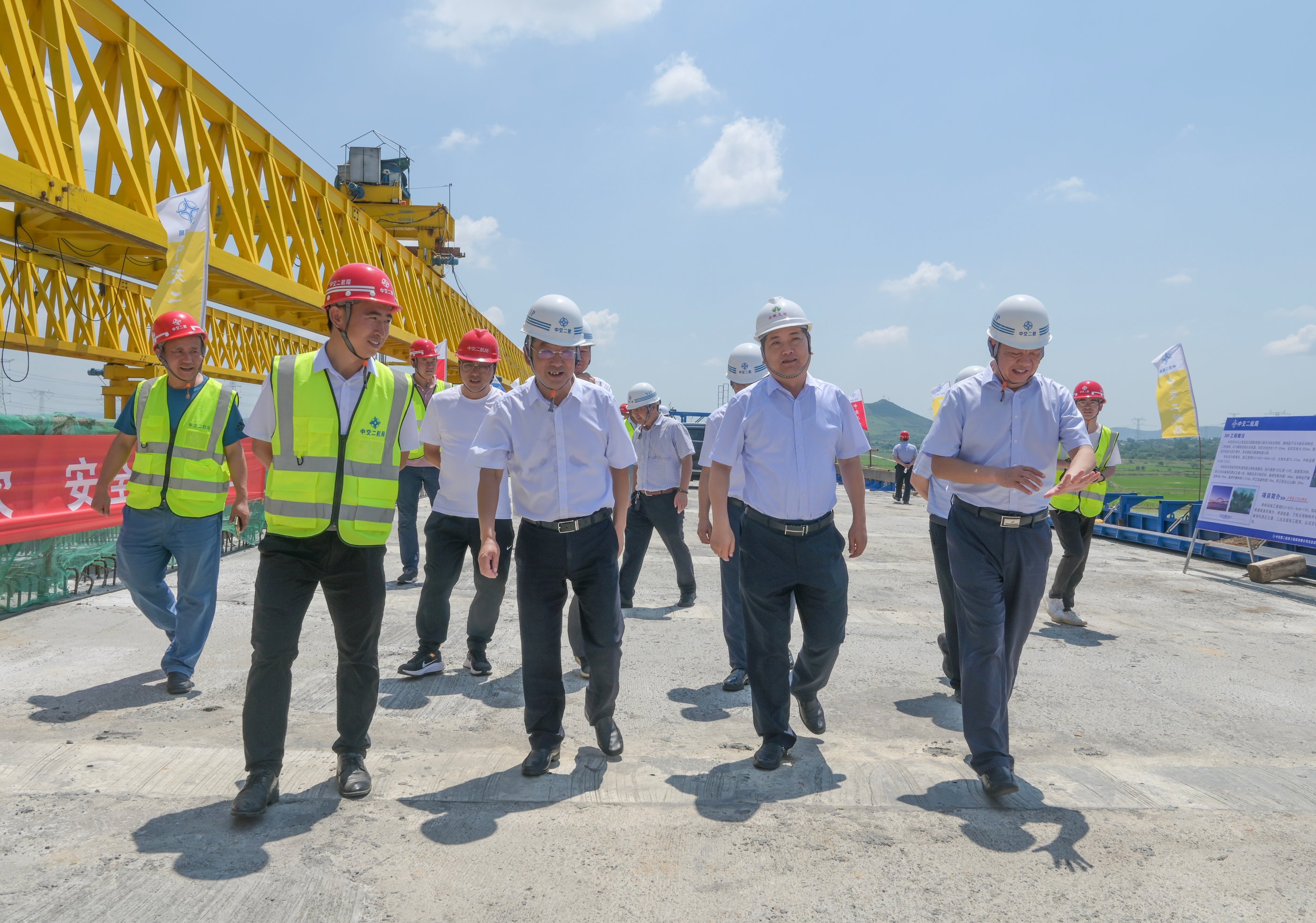 在兆河特大桥施工现场,秦体达认真听取了项目负责人关于项目施工进度、项目重难点、安全生产及人才培养等情况的汇报,对项目前期建设表示肯定,并针对项目年度目标任务提出建设性意见。