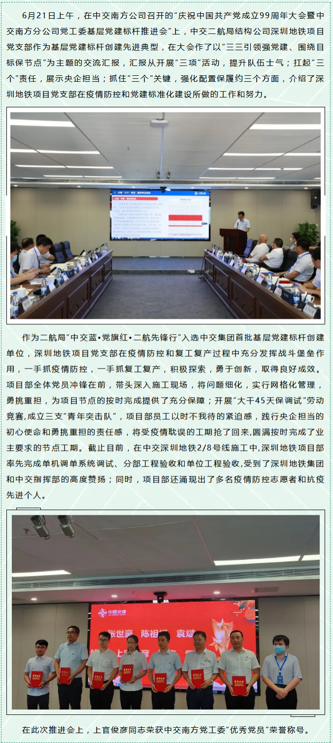 深圳地铁项目党支部在中交南方公司召开的党建标杆推进会上交流汇报