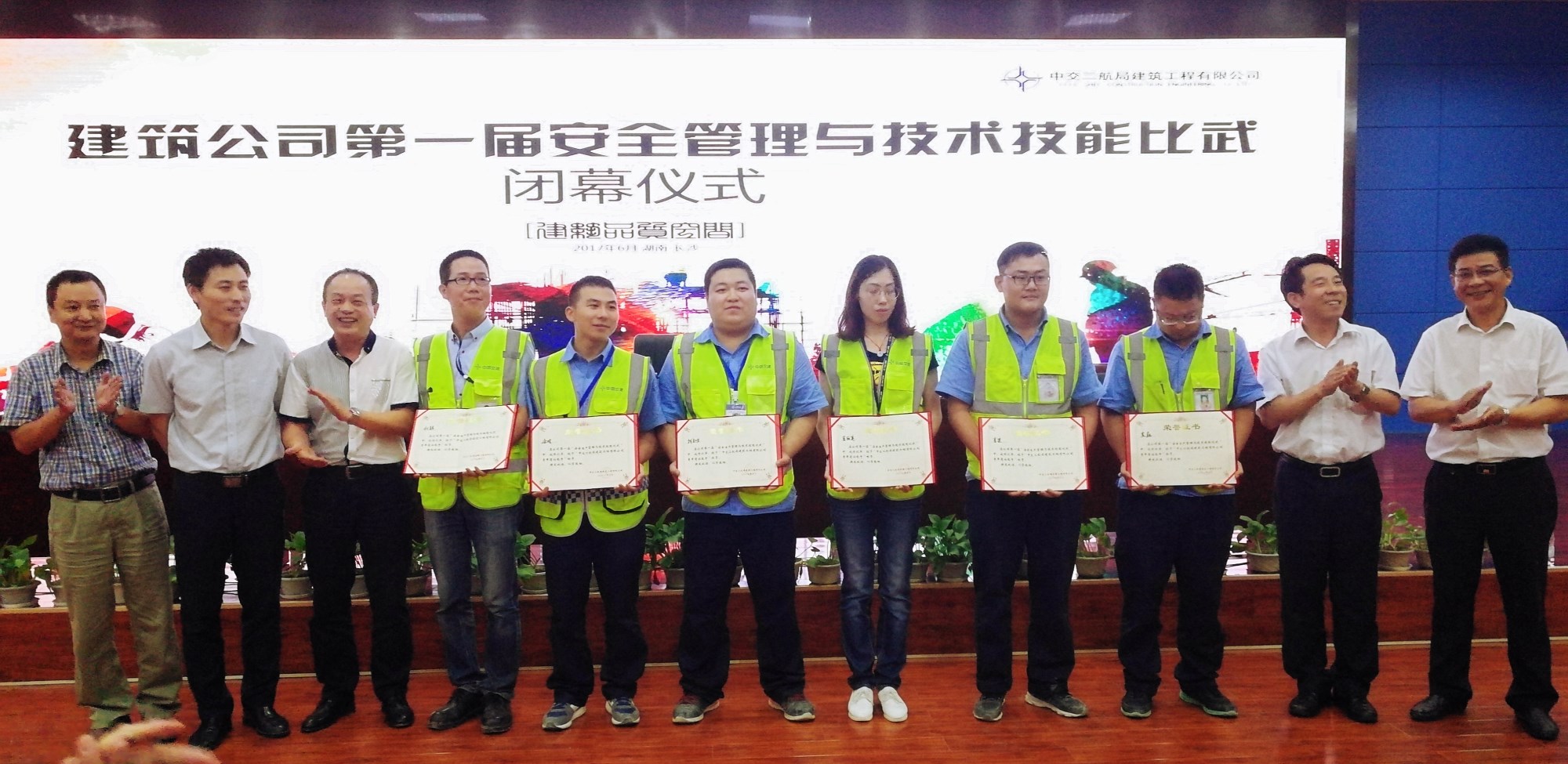 二航局工会副主席许世勇、二航局安监部总经理吕树胜、公司党委书记徐磊、公司工会主席高峰出席了开幕式和闭幕式。许世勇对此次技能比武给于了高度赞扬,他指出建筑公司作为一个新生公司,能举办如此大规模的技能比武,让人惊叹,并希望员工借岗位练兵和技能比武活动,努力提高专业技能和业务知识,培育和弘扬工匠精神。吕树胜对参赛选手提出了要求,他指出各安全员在今后工作中要熟练掌握安全技能,了解相关法律、法规,不断提升组织协调能力,创新管理手段,以正能量应对安全工作,通过此次技能比武查漏补缺,为今后安全工作保驾护航。徐磊指出此次技能比武的成功举办是公司建设“学习型、创业型”团队的重要举措,也是公司在“建筑品质空间”企业使命的指引下,培养品质员工、实行品质管理、落实品质发展的决心。他希望通过此次安全生产管理技能比武强化安全生产重要性,提升安全意识,同时鼓励全体员工保持爱岗敬业、苦练技术的精神风貌,做好“传帮带”工作,为公司人才的培养提供力量。