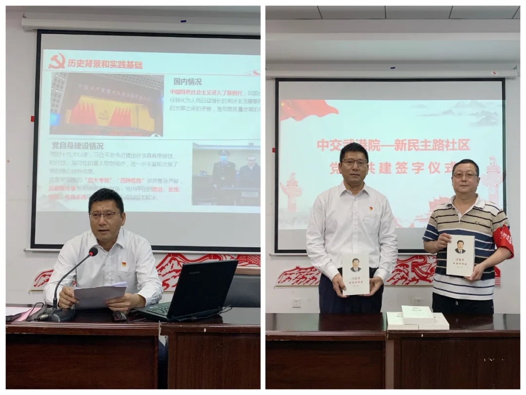 正值纪念抗战胜利75周年,武港院党委书记、董事长尹应军同志带队前往武昌区新民主路社区讲党课。尹应军结合国内外形势、社区治理现状等,从历史背景、实践基础、框架和逻辑结构,以及提出的重大思想观点等5个方面为社区党员们解读了《习近平谈治国理论(第三卷)》,并进行了赠书活动,助推了社区党组织建设工作,使党旗在社区高高飘扬。