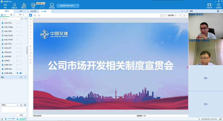 5月22日上午,武港院(以下简称“公司”)组织召开市场开发相关制度宣贯会议。公司总工程师翟建国,市场开发部全体人员,一线单位副总工及以上人员、一线单位市场开发部全体人员及其他经营相关人员共58人参加会议。本次会议由市场开发部主办,以“好视通”视频形式举行,会议由市场开发部副部长梁光林主持。