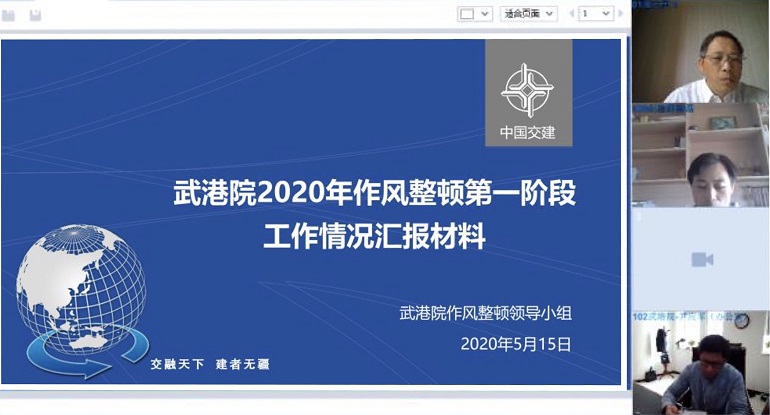 5月15日上午,中交二航局党委委员、副总经理、总工程师、作风整顿第七督导组组长施志勇,副组长徐磊以及成员李宁、游华锴以视频方式对武港院(以下简称“公司”)2020年作风整顿进行第一阶段督导。会议由徐磊主持。