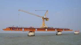 目前,从南澳大桥四标项目部获悉,该工程段深水区120个墩身施工已全部完成,这标志着由武港院桥梁设备技术公司自主研发的外海墩身移动式施工平台得到了成功应用。